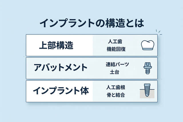 インプラントの構造とは?3つのパーツと仕組みをわかりやすく徹底解説